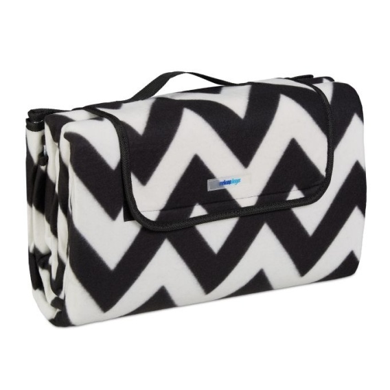 Koc piknikowy polarowy 200x200 cm - czarno-biały zygzak - składany