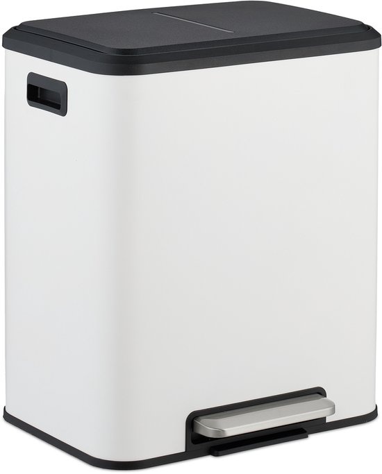 Kosz na śmieci kuchenny 2x15L - dwukomorowy - biały - ciche zamykanie - sortowanie