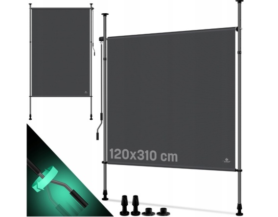 📏 Dane techniczne: • Wymiary ramy: 100×220–310 cm, 120×220–310 cm, 150×220–310 cm, 200×220–310 cm • Wymiary materiału: 85×270 cm, 105×270 cm, 135×270 cm, 185×270 cm • Materiał: aluminium + tkanina z powłoką PU • Regulacja: 2,20 m – 3,10 m • Odporność: UV, woda, wiatr, słońce • Mechanizm: ręczna korba